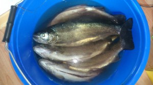 Für 2,5 Kg Fisch ca.5 Forellen : 250 gr. Salz in 5 Liter Wasser geben , Die Forellen am besten über Nacht in der Lauge lassen.